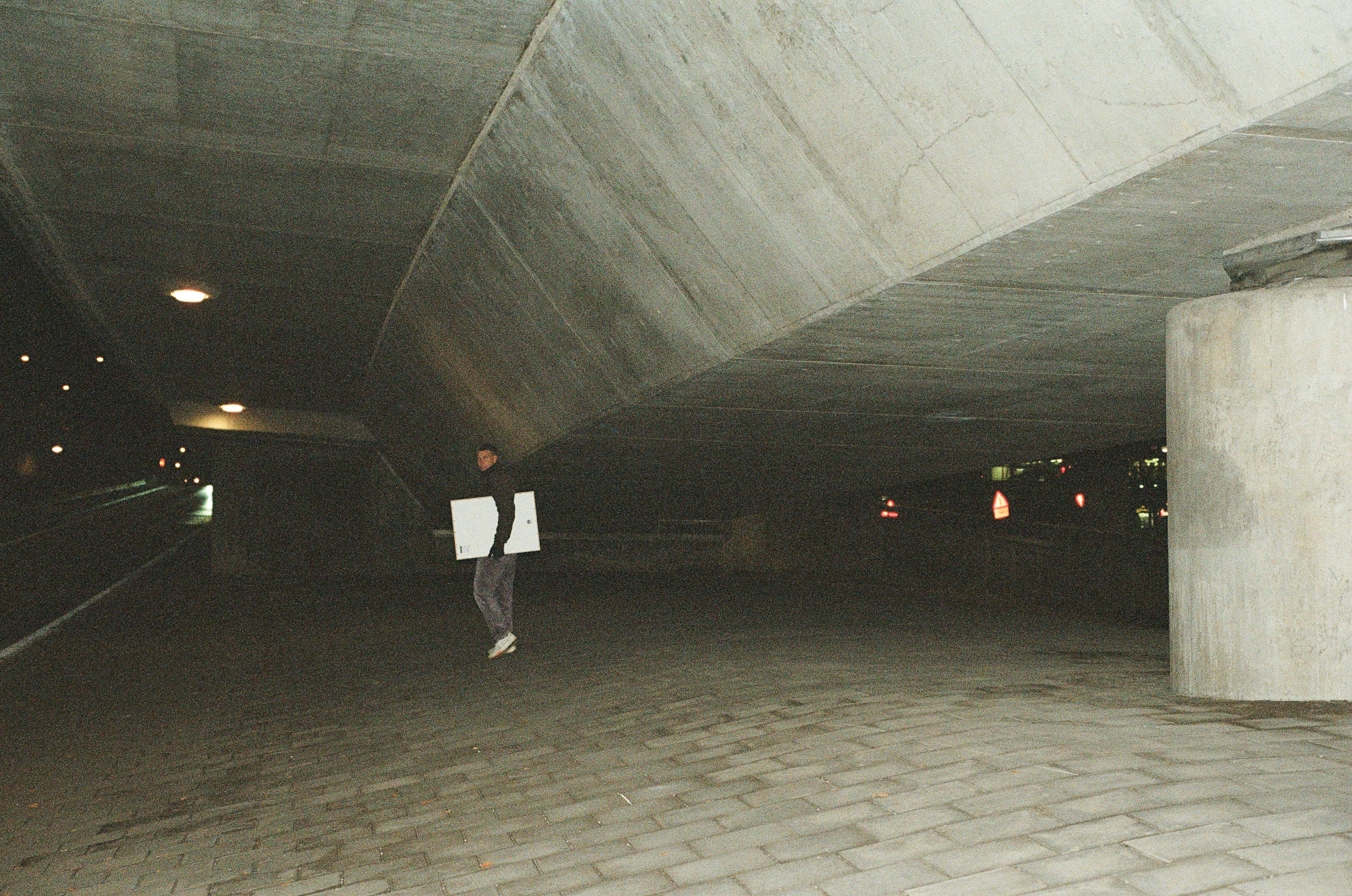 Det gulliga försöket till industriområde mellan Farsta och Hökarängen kämpar på. Till skillnad från Västberga, så behöver du aldrig oroa dig över att bli överkörd av nån lastbil här. Jag fotar en tegellänga, men är tvungen att kliva fram några meter för att undvika att få med en bil med djurgårdsmärke och missar kanske därmed att få med dagens enda glimt av höstsol, som får fasaden att glittra av regndropparna. Tittar lite för länge på en snubbe i en 90-tals Audi. Tejpad med flera rullar silvertejp. Rush på MatDax. Alltid rush på MatDax? På en bänk intill sitter en av Söderorts många cowboys som i trans och beskådar flödet med folk. Jag hör samma hostande snubbe som jag hörde i Farsta tidigare. Nåt dröjer sig uppenbarligen kvar därnere i bronkerna. Sätter en kråka under Gröna Linjens förmodat lägsta tunnelbanebro, som löper över yttersta delen av Gubbängsfältet. Tar rygg på en grupp halvförvirrade Jehovasungdomar uppe i centrum, men viker kvickt av på en ytterst liten stig och får det antagligen att se ut som jag kan Gubbängens allra hemligaste genvägar. Först vid Tallkrogen börjar man höra bruset från Nynäsvägen, Söderorts puls. XENO.FY.YOKER står det stort över ett bullerplank, signaturerna funkar fint som fondvägg för en sekund i utrymmet mellan två passerande Tyresöbussar. De mysiga närförorterna är nu historia, motorvägen och dess av- och påfarter dominerar den här sträckan på ett brutalt sätt. Ett äldre par står och väljer marschall i den lilla blomsterhandeln vid Skogskyrkogårdens tunnelbanestation.